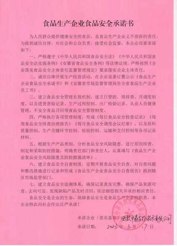 為保證生產(chǎn)的食品質(zhì)量,滿足保障人體健康、人身安全的要求,安徽中森生物技術(shù)有限公司嚴格遵守食品安全法規(guī)...